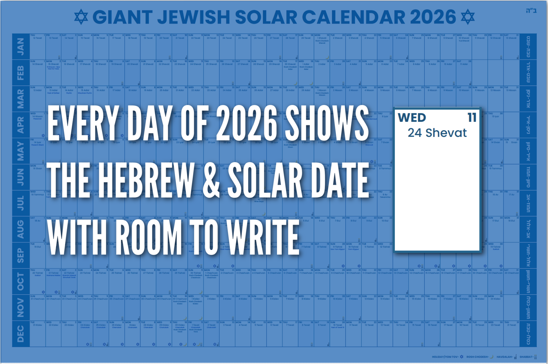 Plan your Jewish year and solar year together on the Giant Jewish Calendar.