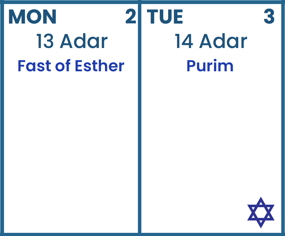 Plan your year seamlessly with every Hebrew month, Shabbat, Holidays, Rosh Chodesh, and Fast Days for the whole solar year clearly displayed.